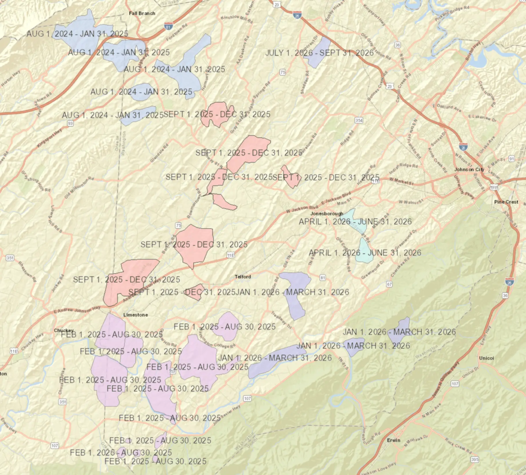In all, the grant will provide access to nation-leading speeds up to 10 GB symmetrical in a swath of western Washington County and the northeast corner of Greene County, including rural Fall Branch, South Central, Sulphur Springs-Bowmantown-Leesburg and west to the Greene County line north of Highway 11E, portions of Lamar, Dry Creek and Conklin, areas south of Jonesborough and areas south of Gray. Grant areas will be constructed in this order.