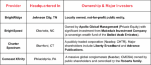 It is important to know who is behind the services you use. While BrightRidge is a local government entity and governed by a local board, our competitors have out-of-state headquarters and are owned by global investment groups and shareholders: